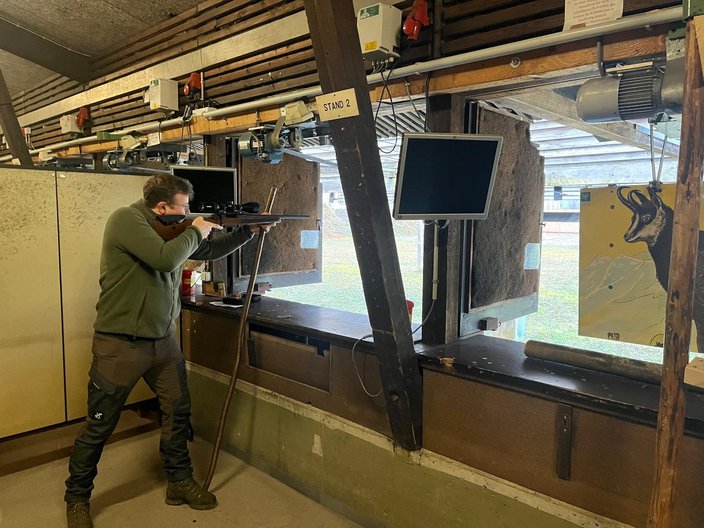 - Zwei Schuss stehend angestrichen auf 100 m nach DJV-Regeln.