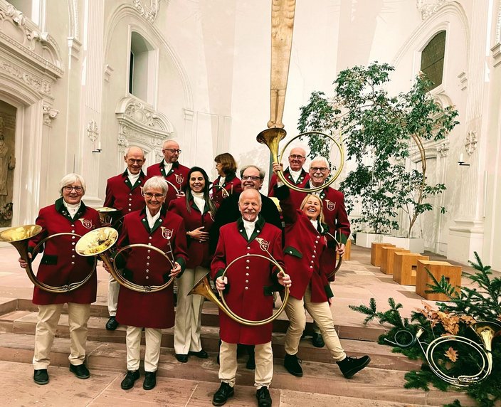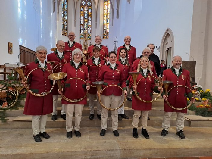Die Freiburger Jagdhornbläser meisterten ihre erste Hubertusmesse am 03. November in der Kirche St. Martin in Freiburg (Mitte).