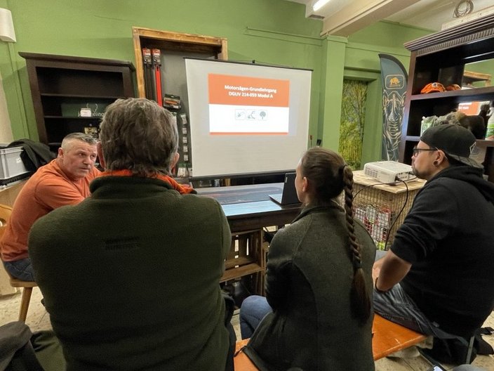 Am Freitagnachmittag empfing uns Forstwirtschaftsmeister Carmin Hertweck in den Räumlichkeiten von Jagdfeeling Riegel, um uns in der Theorie zu vertiefen und am Samstag dann die Praxis im Wald bei Sexau zu erleben.