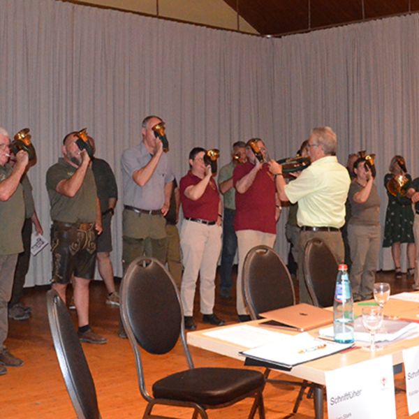Musiklisch umrahmt wurde der KJT vom Gesamtensemble der Bläser in B der JV FR und den Freiburger Jagdhornbläsern!