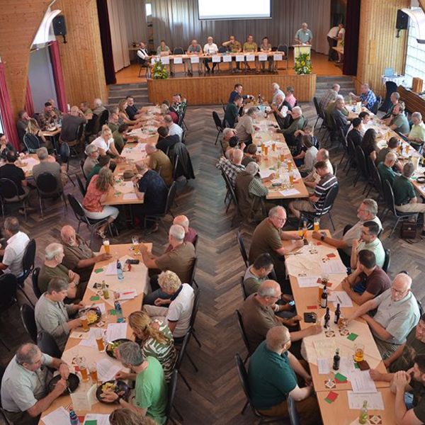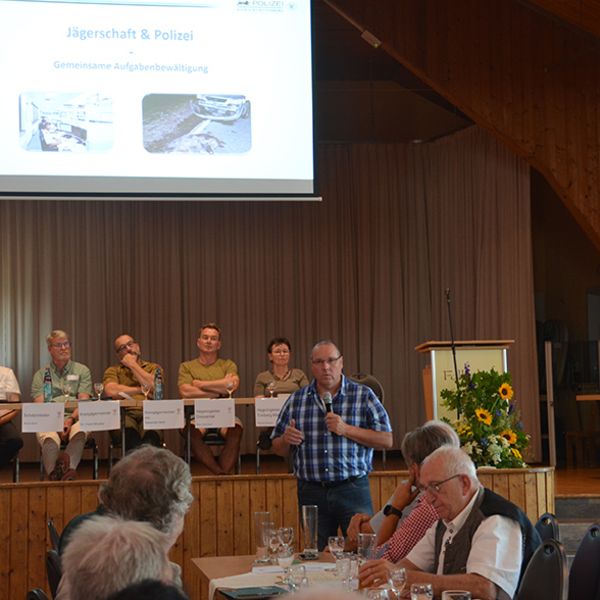Nach den (Toten-) Ehrungen folgte ein Fachbericht von den Polizeibeamten Jürgen Bauer und Martin Gerber über die Problematik Wildunfälle.