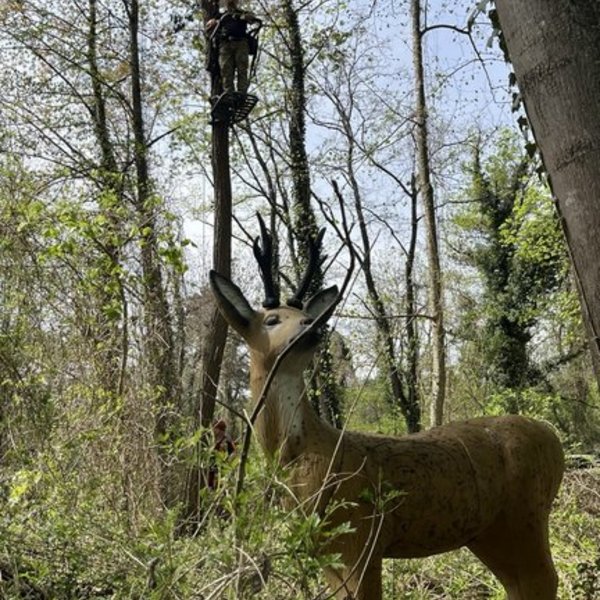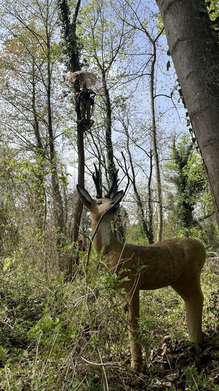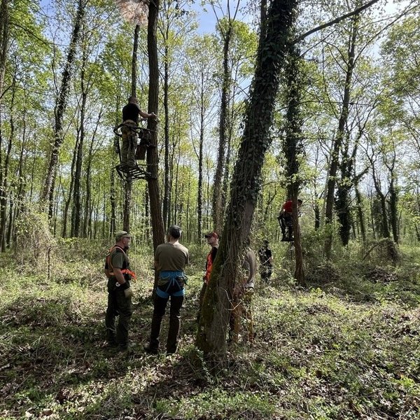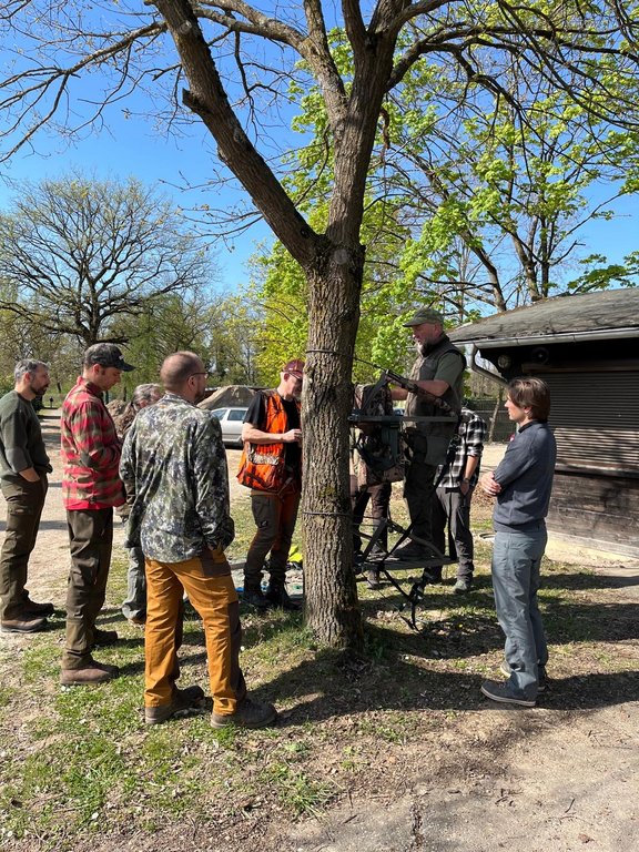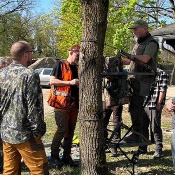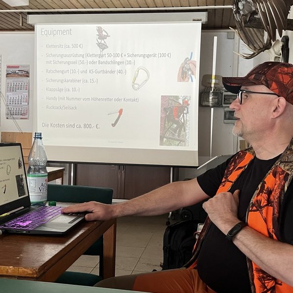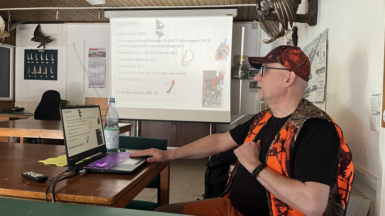 Ein weiterer Schwerpunkt lag auf der Einbindung von Klettersitz-Jägern in den organisierten Jagdbetrieb. Ein enges Zusammenspiel zwischen Jäger und Waldbesitz ist hierbei die Voraussetzung. Für die Organisation von Drückjagden wurden Empfehlungen genannt, wie mobile Ansitze optimal in die Planung und Durchführung integriert werden können. Auch die Ballistik kam nicht zu kurz: Welcher Haltepunkt ist zu wählen, um beim Schießen aus teils steilen Winkeln waidgerecht zu treffen? Praktische Kniffe zur Kommunikation im Revier und nützliches Zubehör rundeten den theoretischen Teil ab.