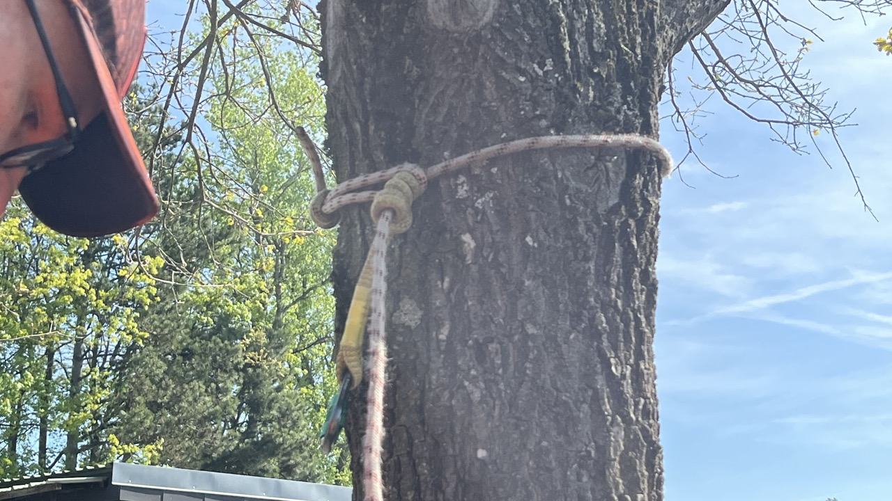 Am Vormittag widmete sich jede Gruppe der Theorie im Thoma-Haus in Bremgarten. Neben der rechtlichen Situation, die sich je nach Bundesland unterscheidet, stand die Materialkunde im Vordergrund. Heiner Höllerl demonstrierte verschiedene Ausrüstungsgegenstände sowie deren Vor- und Nachteile und erläuterte die Anforderungen an geeignete Baumarten. Besonders die Beschaffenheit der Rinde ist für einen sicheren Halt der Krallen entscheidend.