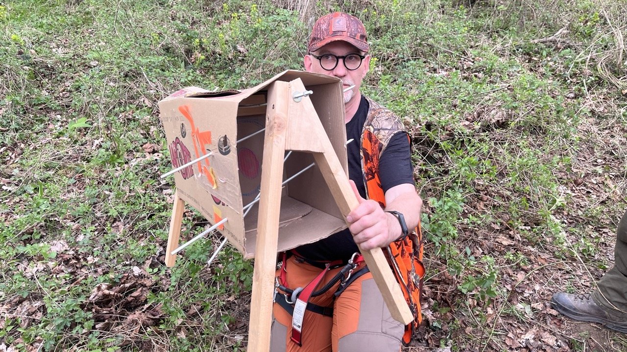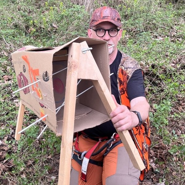 Besonderes Interesse weckte die Simulation von Schusskanälen. Mithilfe einer Reh-Attrappe aus Pappkartons und Alustäben wurde verdeutlicht, wie sich der Schusskanal durch den Wildkörper bei unterschiedlichen Höhen und Entfernungen verändert. Auch der Einsatz von Jagdhunden direkt vom Klettersitz aus wurde thematisiert und durch Vorrichtungen wie den „Schnallomat 2.0“ veranschaulicht. Ein Beispiel dafür, wie die einfachen Mittel oft die Besten sind.
